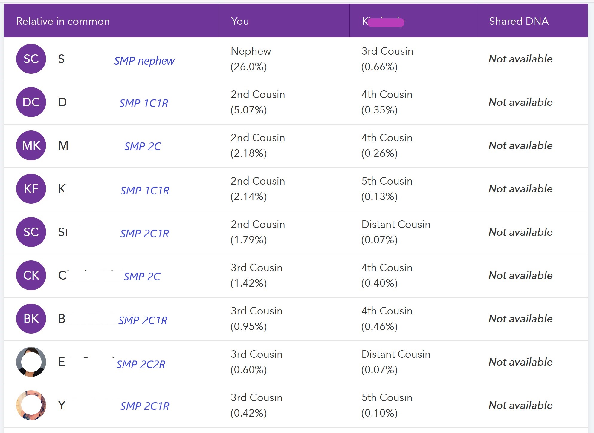 23andMe “Relatives in Common” between SMP and KE in 2020