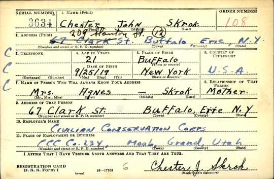 - Chester S. Skrok, Civilian Conservation Corps Enrollee, National Archives and Records Administration, SSN/SN: ******236, Request Number 2-26389788080, received 25 Apr 2022.