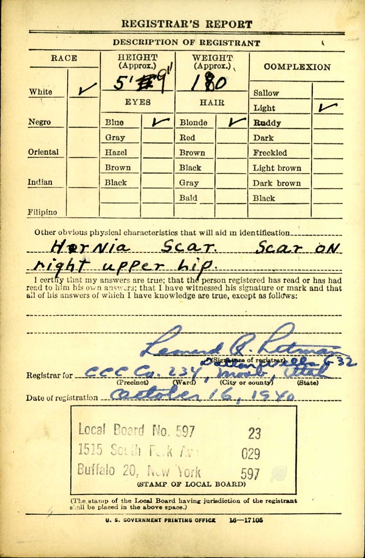 - “Sixth Service Call to Draw 8000 Men In New York State,” Buffalo Evening News, Buffalo, New York, 11 February 1941, page 16, column 2.