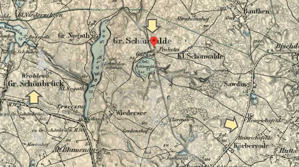 This Heinrichsfelde was near Groß Schönwalde, and was not far from Groß Schönbrück, where my paternal great-grandparents, Marcin Szczepański and Anna Kalinowska, were married in 1878.
