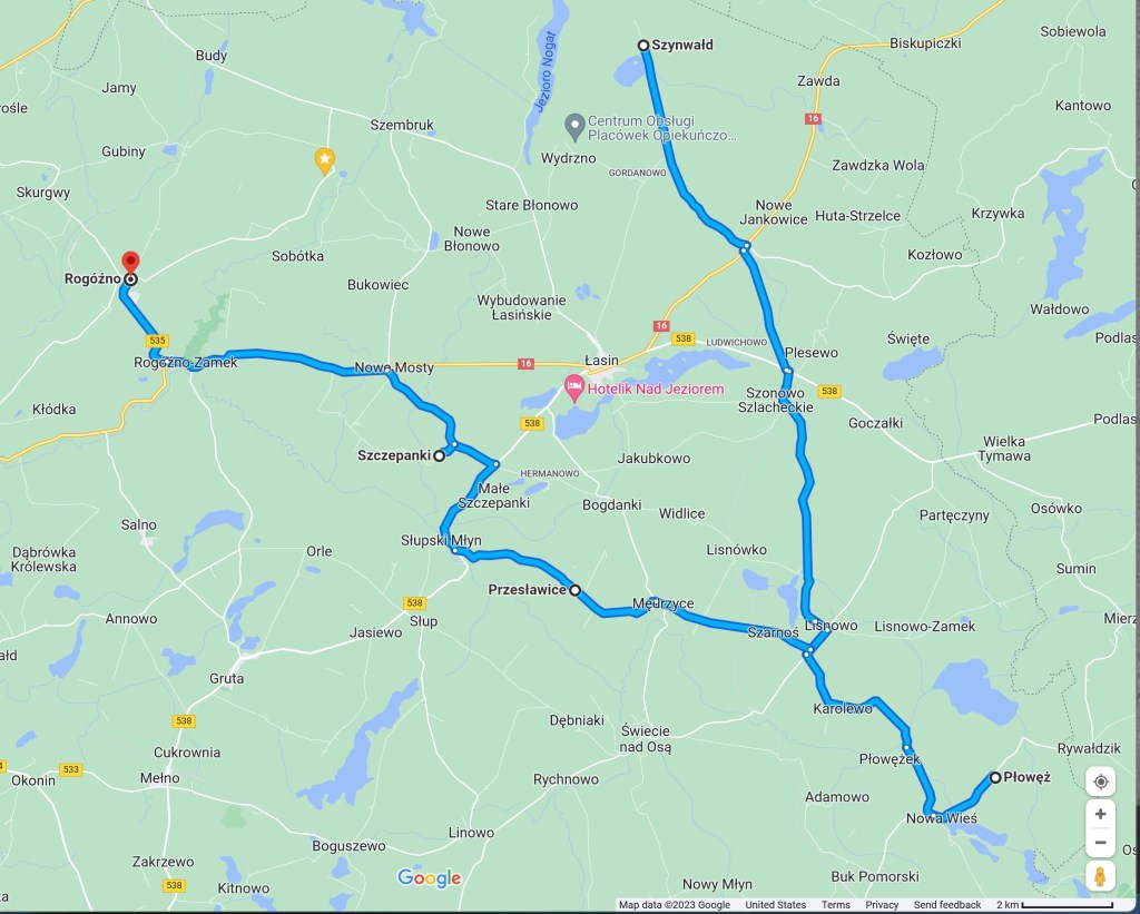 Today, Groß Schönwalde is known by its Polish name, Szynwałd. It took me a while to find Szynwałd, and I wrote about it in