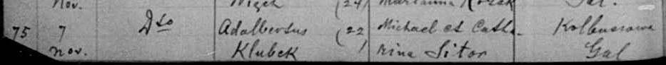 Wojciech Klubek and Julianna Galus were married at Transfiguration Church in Buffalo, Erie, New York, on 7 November 1906. The Roman Catholic church used Latin names for records, so Wojciech is listed as Adalbertus Klubek.