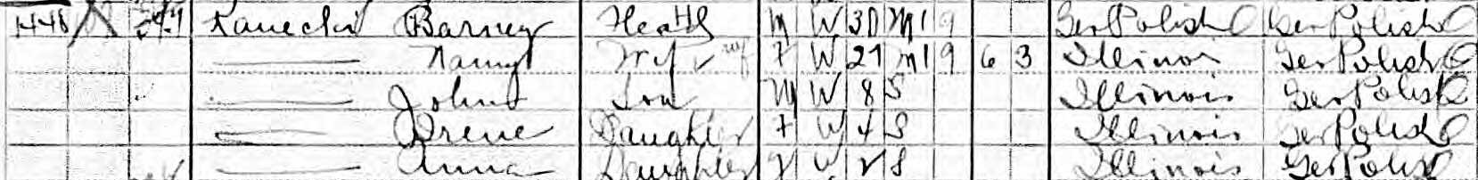 1910 census, Barney and Nancy Kaniecki, 1448 Holt Street, Chicago, Cook, Illinois