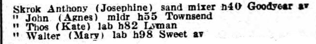 The 1929 Buffalo, New York city directory listed four Skrok couples, including my grandparents John and Agnes at 55 Townsend Street: