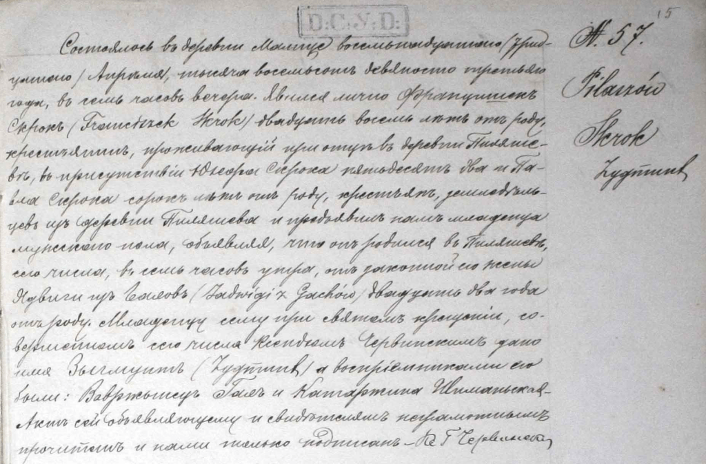 abstract, baptism record Tomasz Skrok, Malice Kościelne