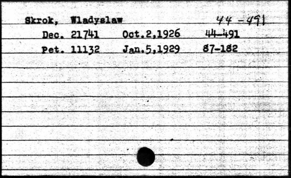 Naturalization card, Wladyslaw Skrok 1926-1929
