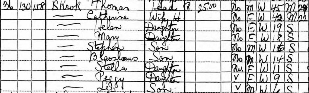 • 1920 Federal Census, New York, population schedule, Buffalo Ward 9, Erie, New York, United States, enumeration district (ED) 73, 7A, 128, Thomas Skrok; digital images, National Archives (online : accessed 3 November 2019); Fourteenth Census of the United States, 1920. Records of the Bureau of the Census,.