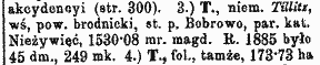 In her children’s birth records, Gottliebe/Bogumiła‘s family birth name was listed as Barbarska, Witkierewicz, Wittke, and Wittkier. I suspect that her birth name may have been Babarska or a variant, and her mother’s name was Wittkier, resulting in differences in the records. The first name Gottliebe/Bogumiła was not common in the little village of Tylice (Tillitz in German), described in Słownik Geograficzny Królestwa Polskiego as having 45 Domow (houses) and 249 Mieszkancy (inhabitants) in 1885.