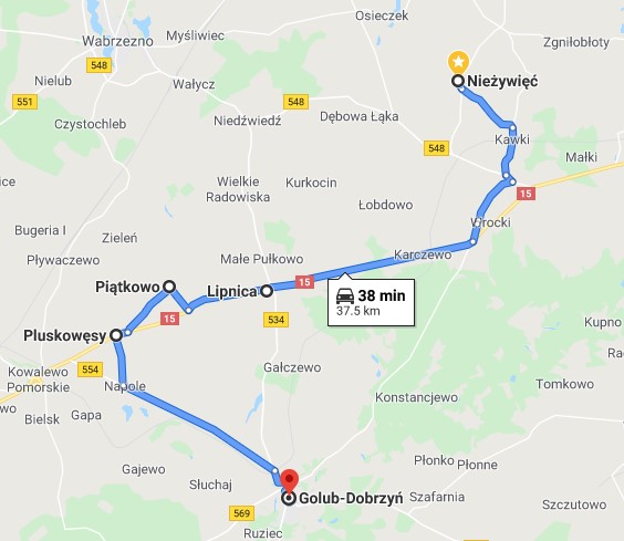 Nieżywięć to Golub in the current Kuyavian-Pomeranian Voivodeship of Poland (Google map)