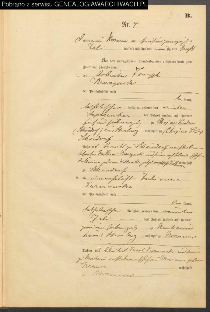 - Genealogia w Archiwach, 1896 4 Józef Kruszyński Julianna Furmańska Brodnica (gmina) USC.