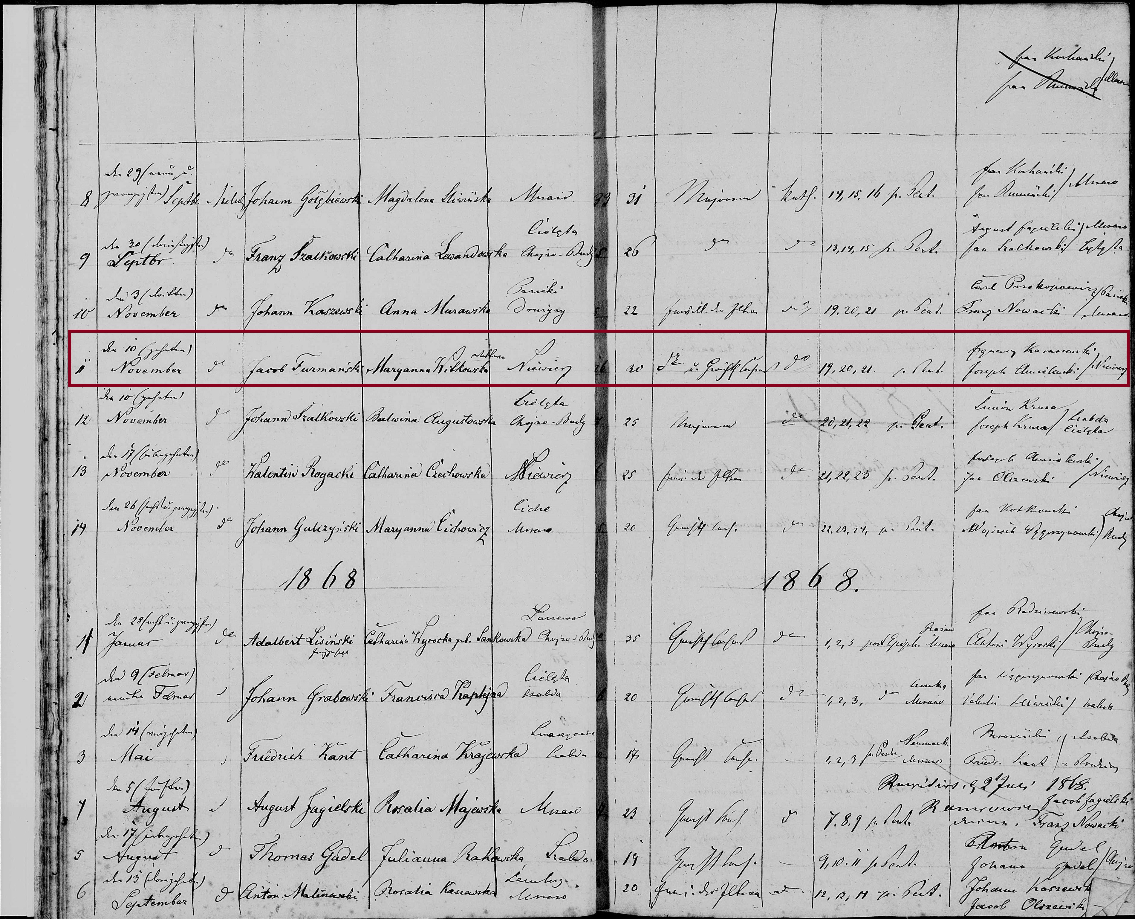 - Geneteka, 1868 40 Antonina Furmańska Jakub Marianna Krause Mszano Niewierz.