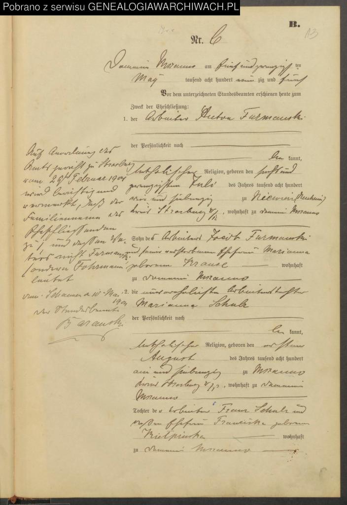 - Geneteka, 1895 6 Antoni Furmański [Inne nazwiska: Fohrmann, ] Marianna Schulz Brodnica (gmina) USC.