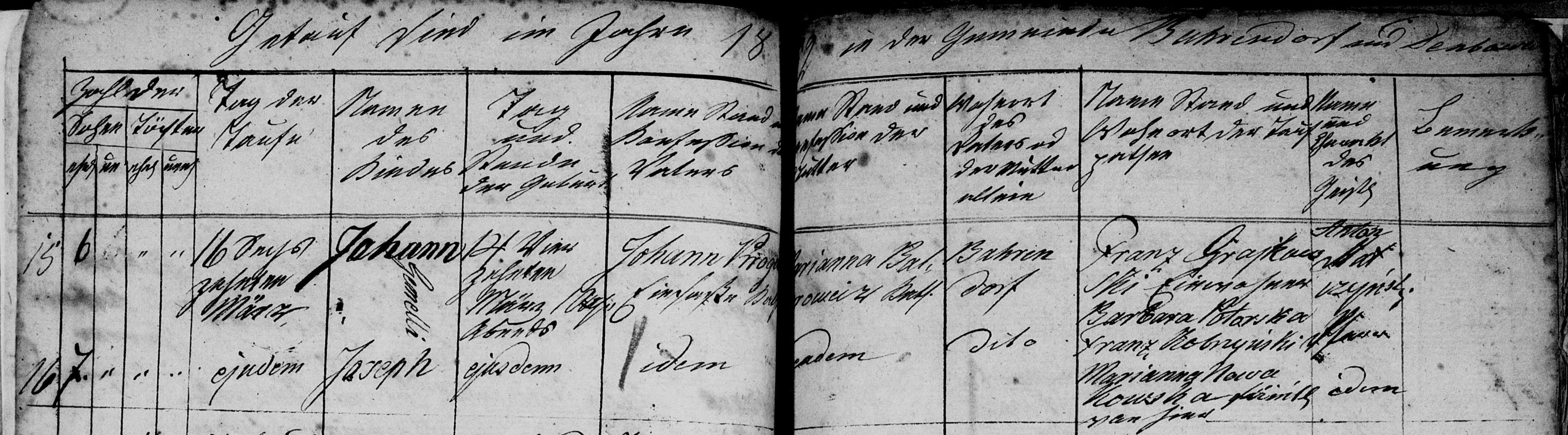 Twin boys Jan and Józef were born to Jan Krogul and Marianna Balcerowicz on 14 March and baptized on 16 March 1852 in Niedźwiedź. In German Jan was called Johann and the place was Bahrendorf, Briesen, Westpreußen, Preußen.