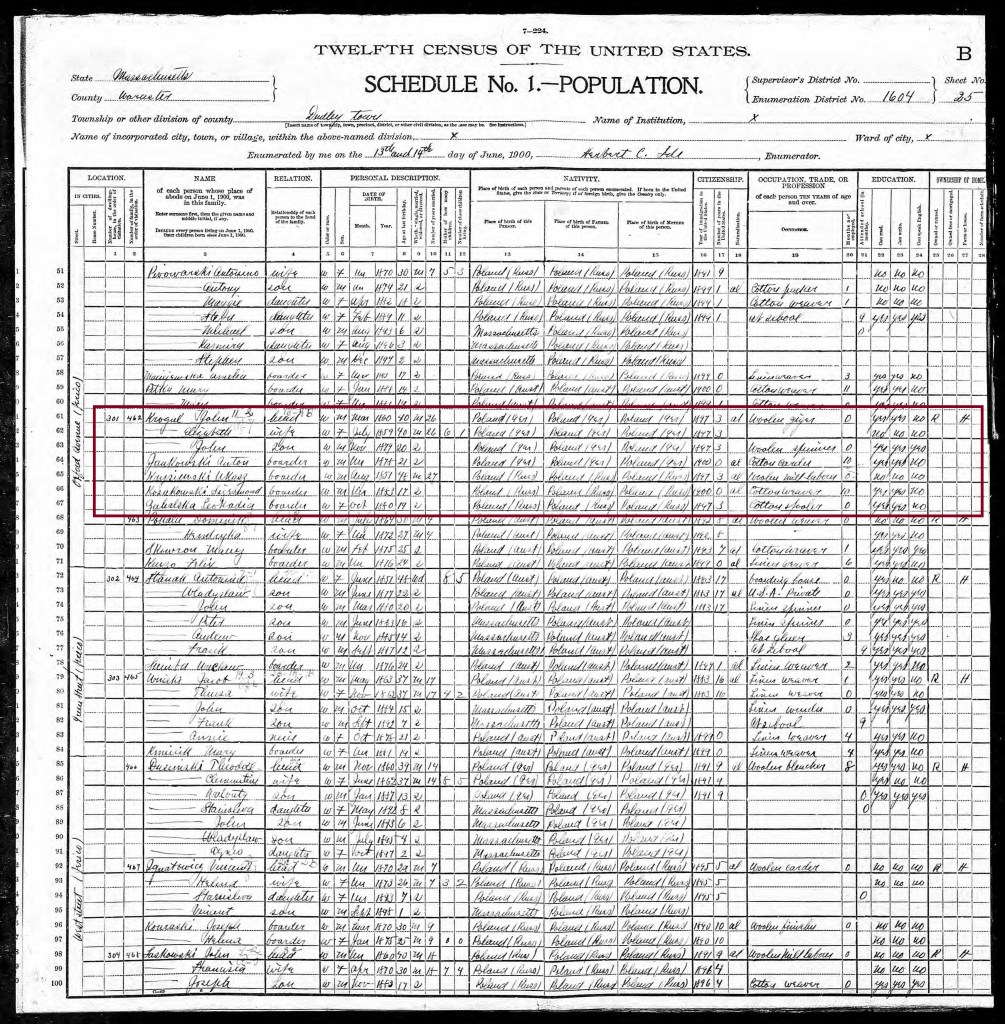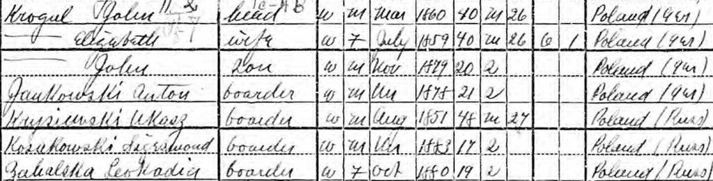 In 1900, Anton Jankowski lived with John and Elizabeth Krogul and their son John in Dudley, Worcester, Massachusetts