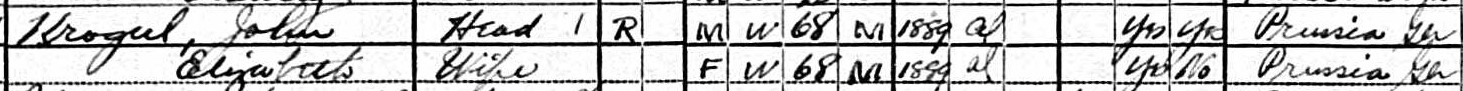 In 1920, John and Elizabeth Krogul lived at 12 West Street in Dudley, Worcester, Massachusetts. They were both 68 years old.