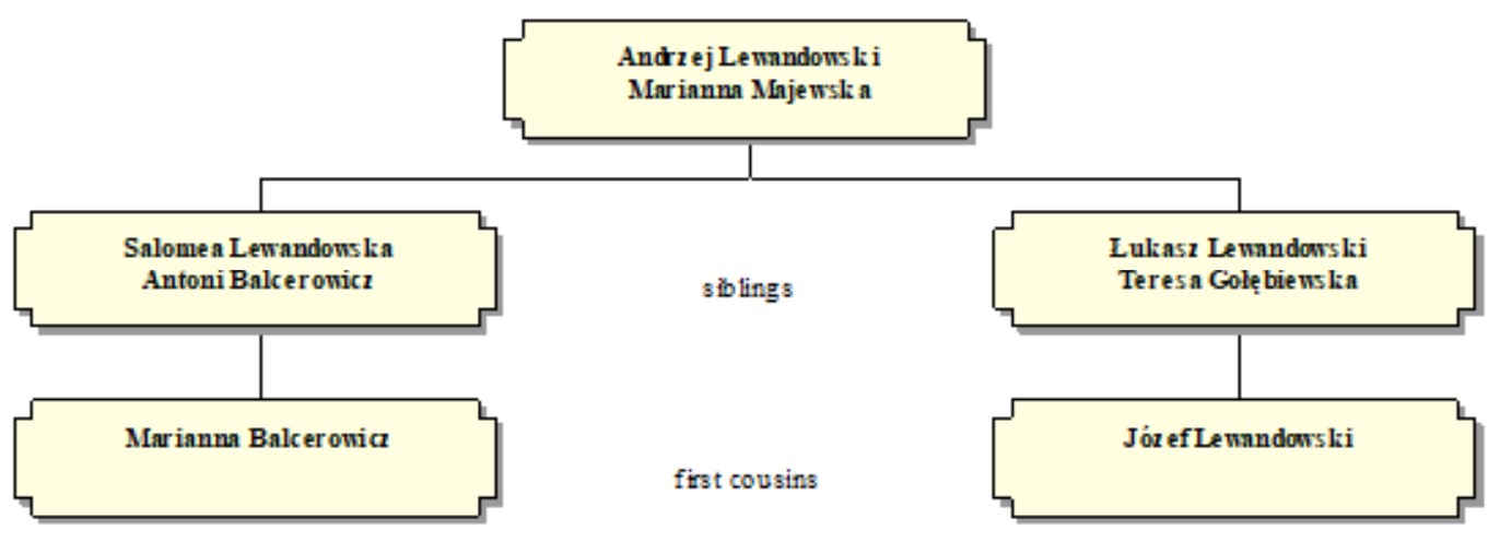 Marianna Balcerowicz Krogul Waleńska was my great-great-grandfather Józef Lewandowski‘s first cousin. Marianna and Józef‘s parents were the siblings Salomea Lewandowska Balcerowicz and Łukasz Lewandowski. Salomea and Łukasz were children of Andrzej Lewandowski and Marianna Majewska.