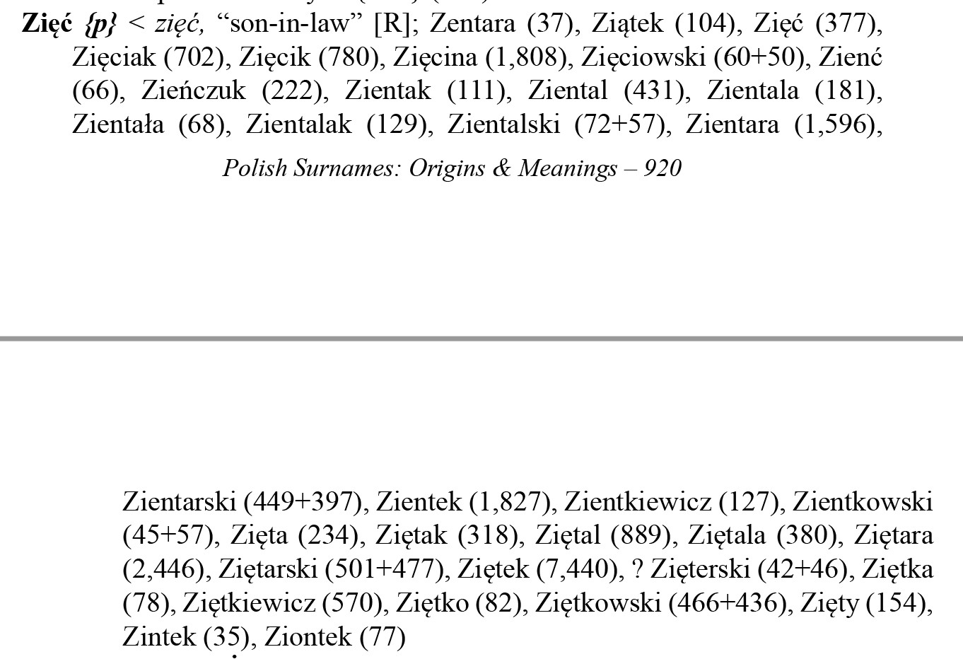 Zięć entry, Polish Surnames: Origins & Meanings, Third Edition