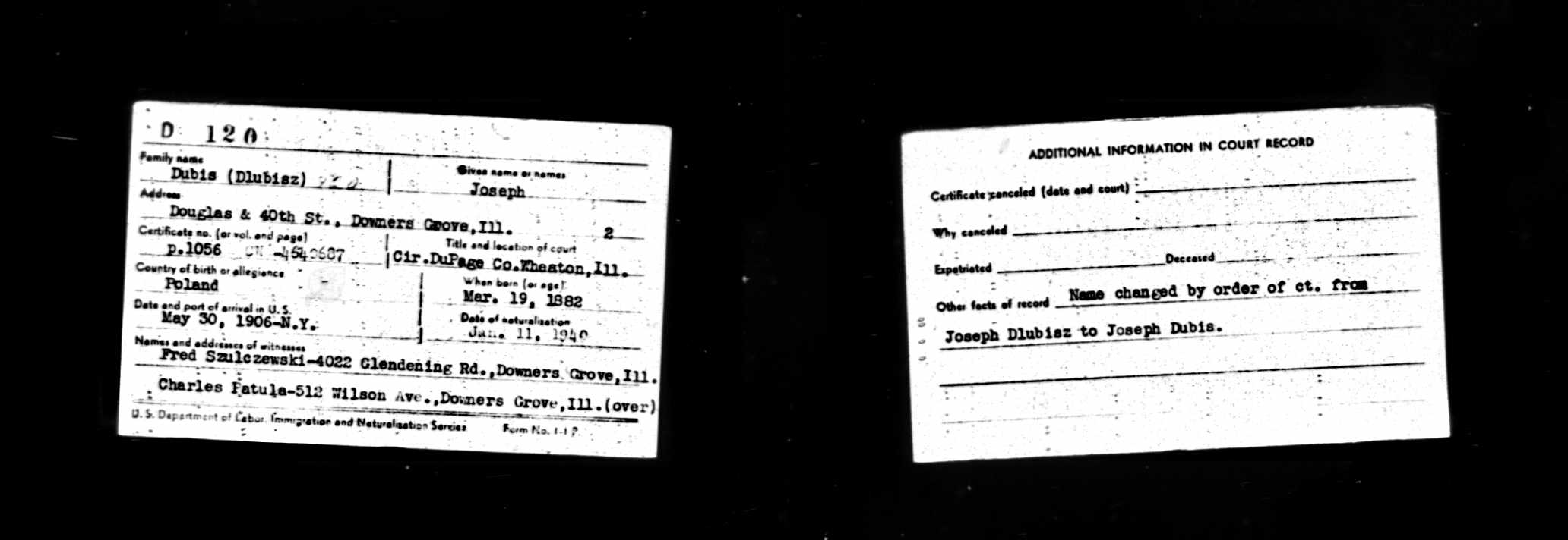 Naturalization Card, Joseph Dubis (Dłubisz), DuPage County, Wheaton, Illinois