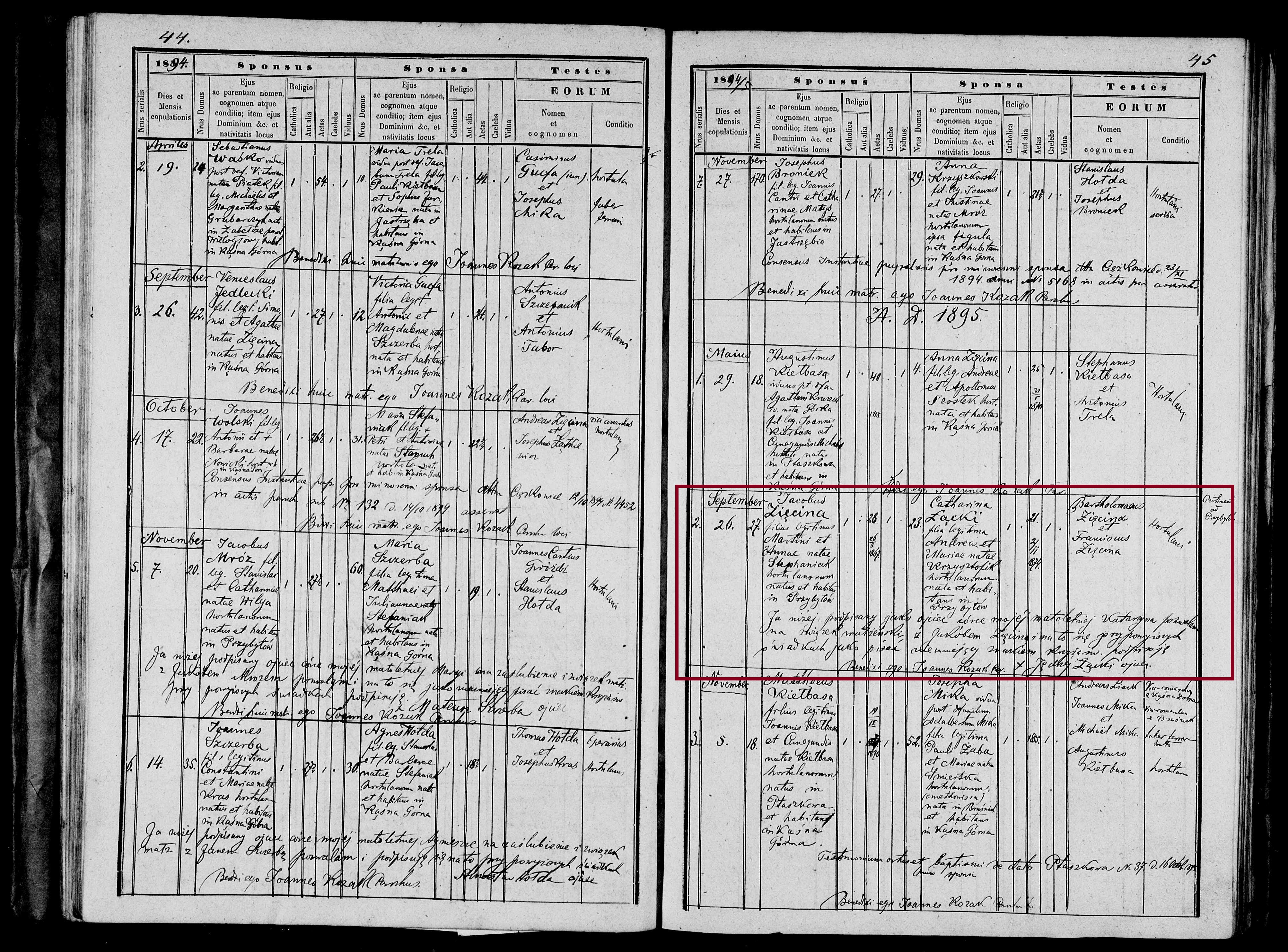 • Jastrzębia Ciężkowice, Poland, “Kościół rzymsko-katolicki. Parafja Ciężkowice (Tarnów),” database, LDS Family History Library, Family Search (familysearch.com: accessed 29 December 2021), Jakób Zięcina, Katarzyna Łącka; citing Austria, Galizien, Ciężkowice, Jastrzębia – Church records.