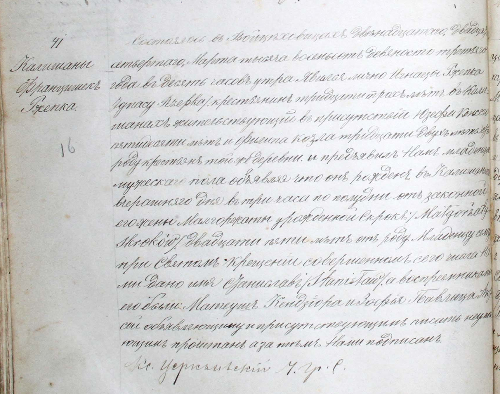 Franciszek Rzepka was born on 23 March 1893 in Kaliszany and baptized at Kościół pw. Św. Wojciecha Biskupa i Męczennika in Wojciechowice, Opatów, Radom, Congress Poland, Russia.