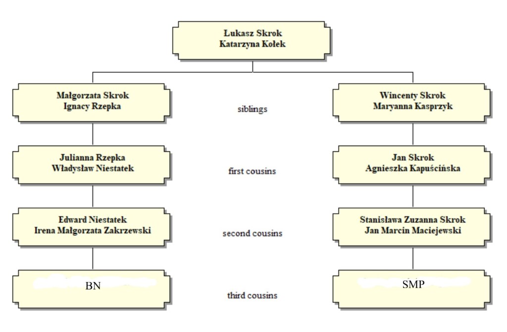 In the 1990s, I was told Edward Niestatek was a Rzepka relative and I corresponded with his son B. Niestatek in California. His grandmother Julianna Rzepka Niestatek and my grandfather Jan Skrok were first cousins, so B. Niestatek and I are third cousins.