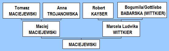This marriage united Tomasz Maciejewski‘s first family with the first family of Bogumiła/Gottliebe Babarska Wittkier Maciejewska.