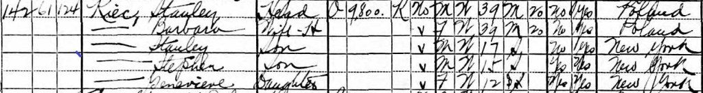 • 1920 Federal Census, New York, population schedule, Stanley Kiec; digital images, National Archives (online : accessed February 2016); Fourteenth Census of the United States, 1920. Records of the Bureau of the Census,.