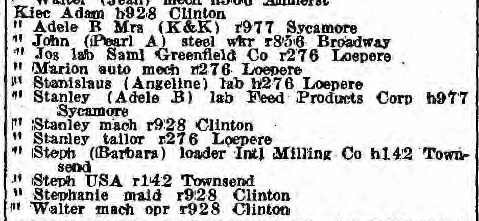 In the 1941 Buffalo city directory, there were four men named Stanislaus or Stanley Kiec, although it appears that the entry at 142 Townsend should also be for Stanley (Barbara).